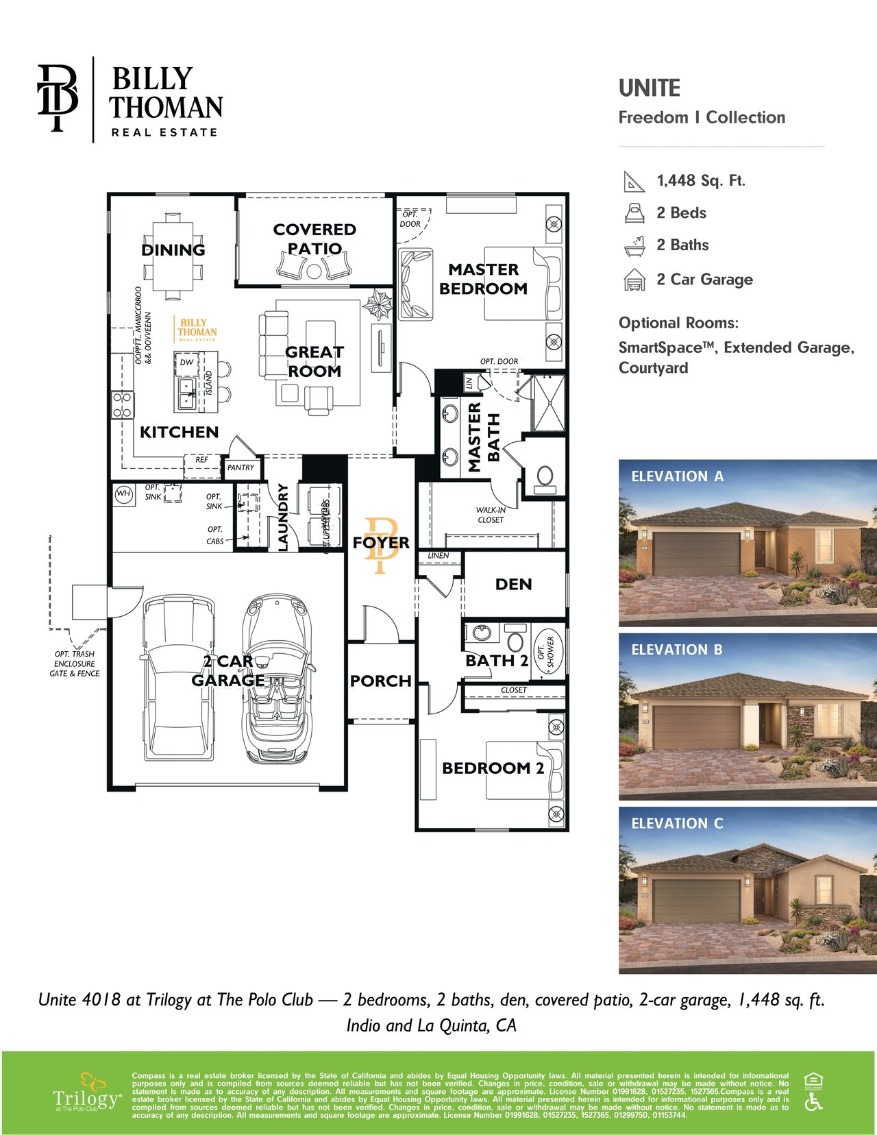 FREEDOM I COLLECTION – 1,448 TO 1,928 SQ. FT. AT TRILOGY AT THE POLO CLUB IN INDIO & LA QUINTA, CA