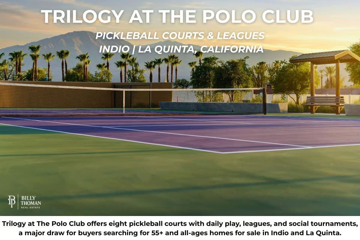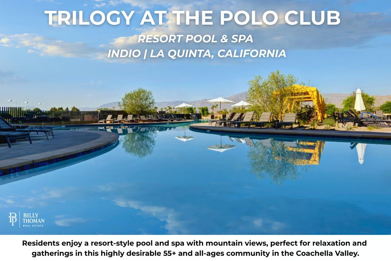 Live the desert lifestyle at Trilogy at The Polo Club in Indio and La Quinta, California, a private, guard-gated 55+ active adult community built by Shea Homes. This premier neighborhood combines modern single-story homes, open floor plans, and seamless indoor-outdoor living with resort-style amenities and panoramic Santa Rosa Mountain views. Ideally located on the La Quinta border near PGA West, Old Town La Quinta, and the Coachella and Stagecoach festival grounds, Trilogy offers residents a lifestyle centered on wellness, recreation, and social connection. For buyers seeking homes for sale in the Coachella Valley’s most desirable communities, Trilogy at The Polo Club delivers unmatched value, lifestyle, and convenience.