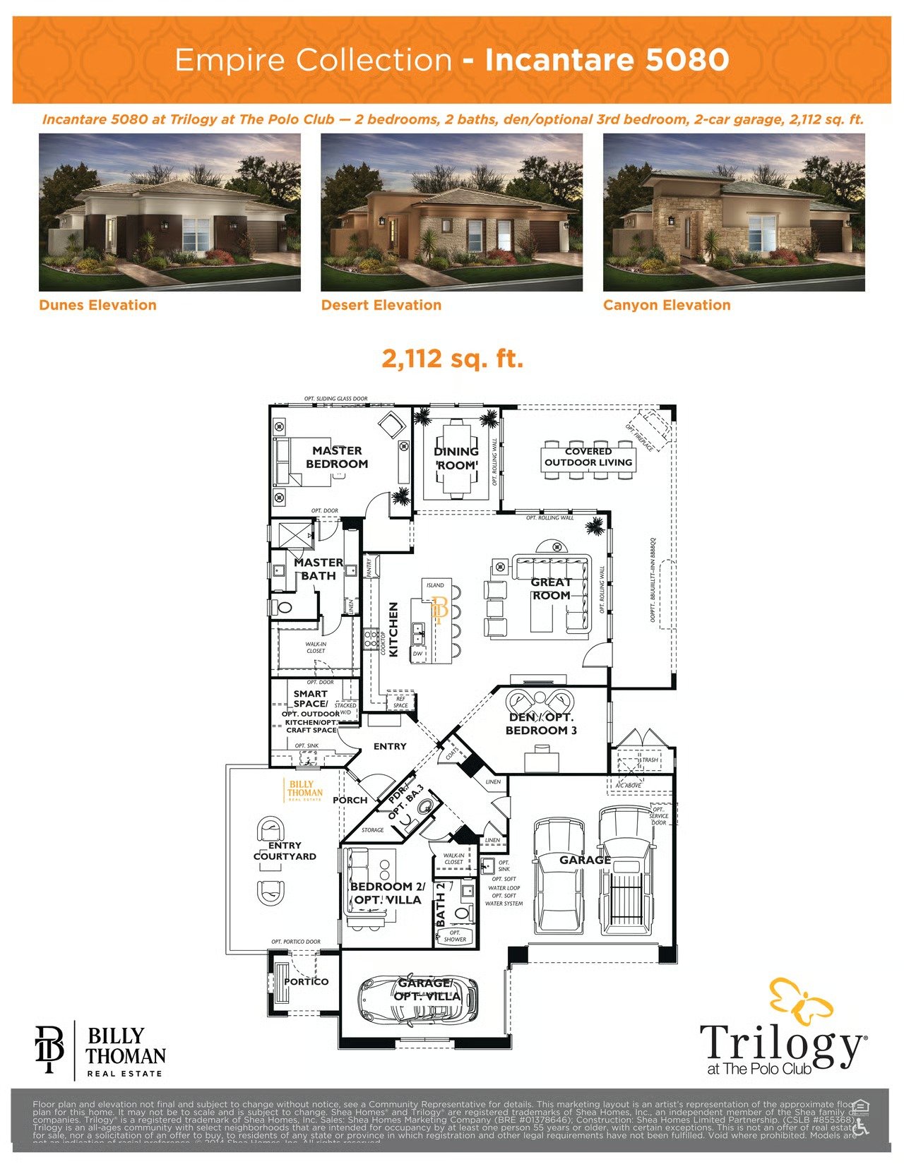 Incantare 5080 – 2,112 sq. ft., 2 Beds, 2 Baths, Den + Optional Villa, Covered Outdoor Living, 2-Car Garage