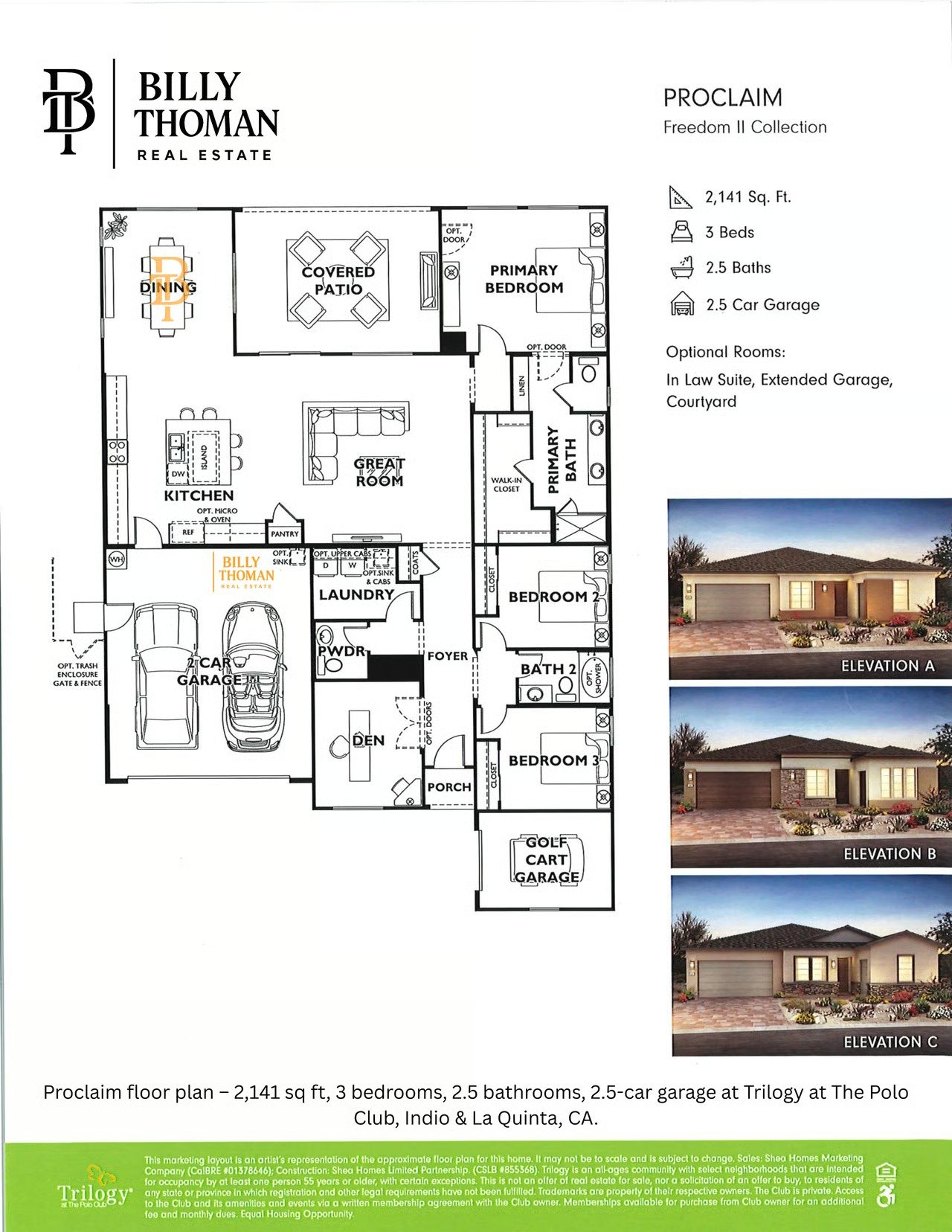 🔸 PROCLAIM – 2,141 SQ. FT. AT TRILOGY AT THE POLO CLUB IN INDIO & LA QUINTA, CA