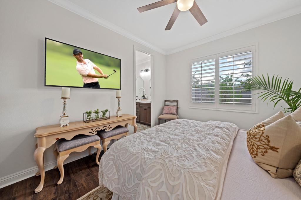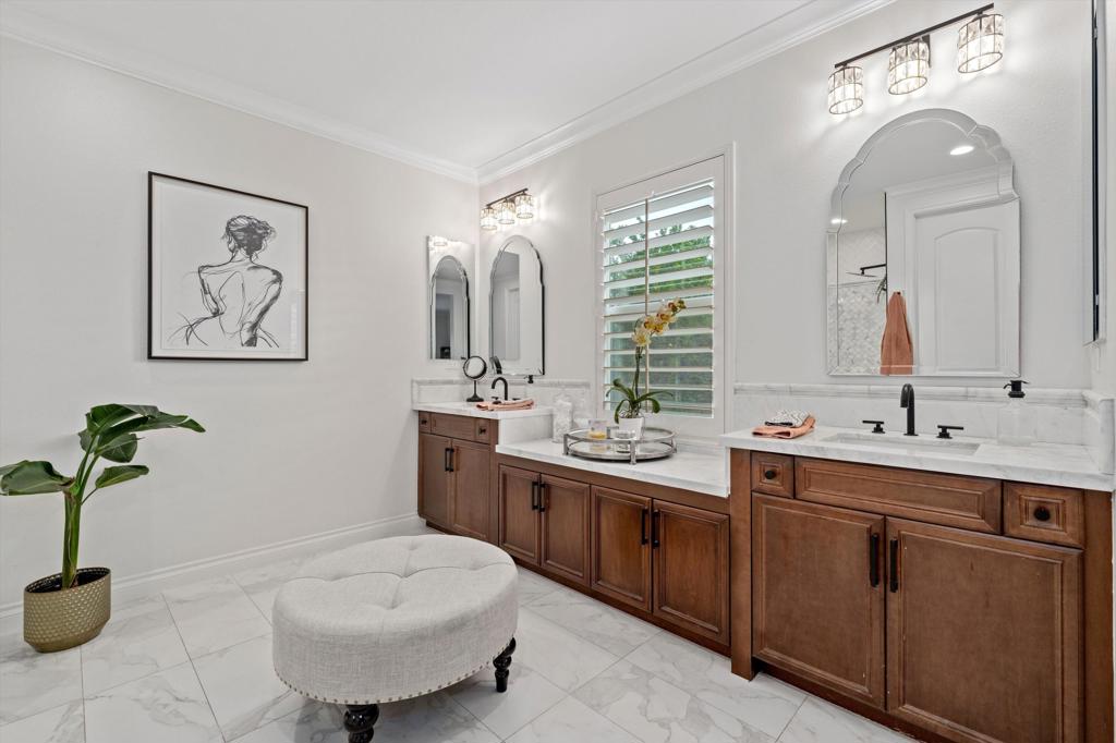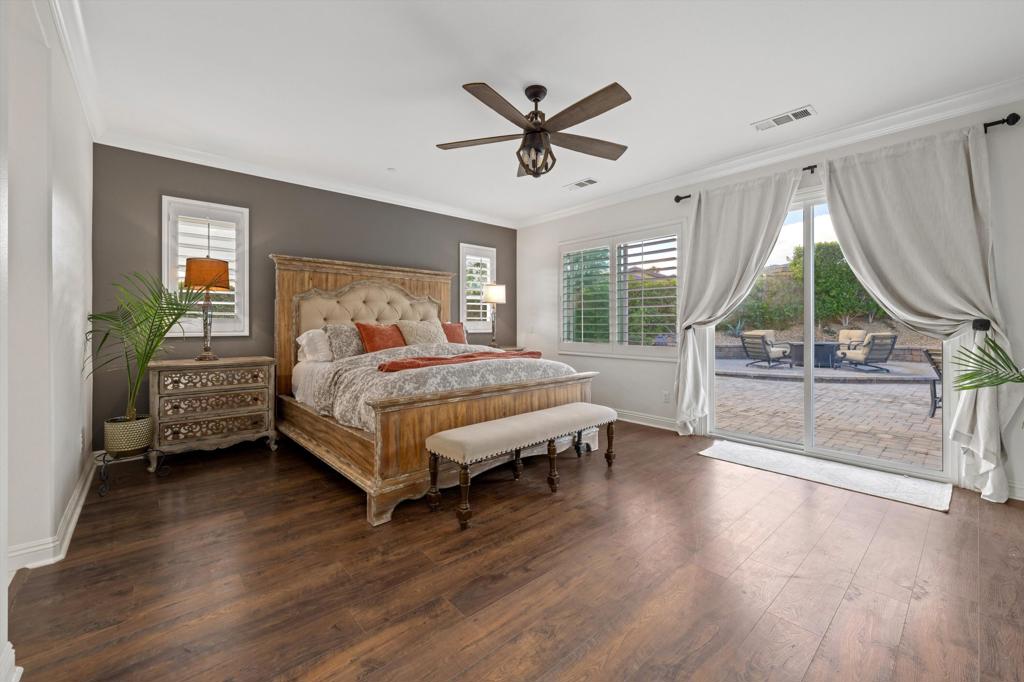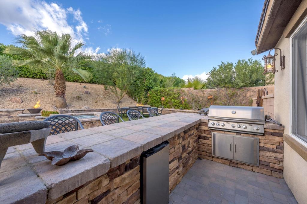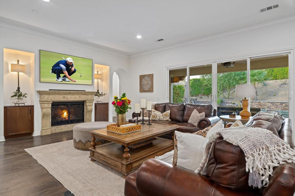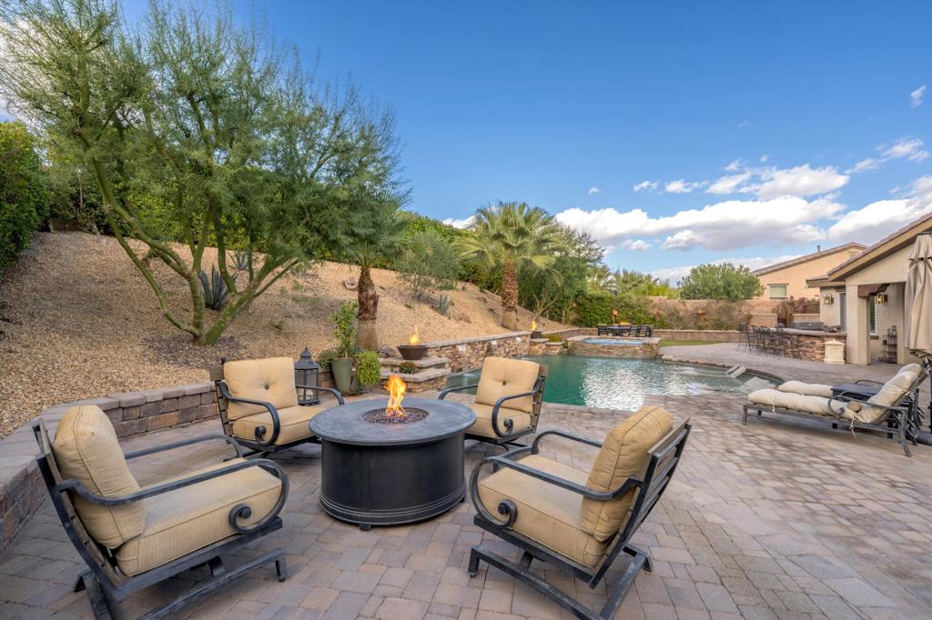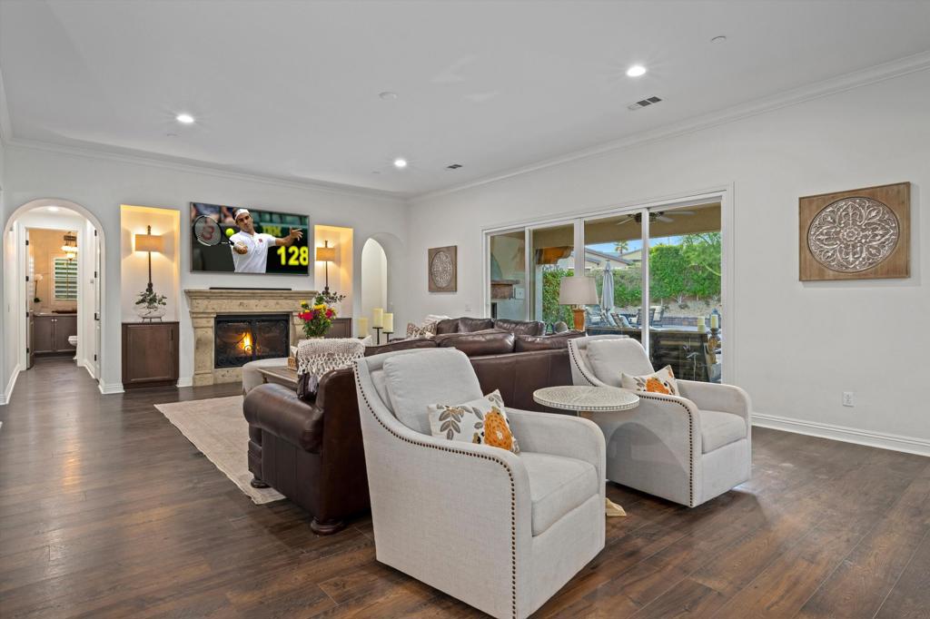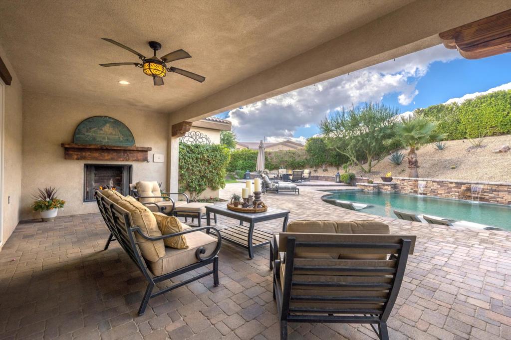 Huge lot with Pool & Spa! Nestled in the heart of the Coachella Valley, this exquisite home offers a seamless blend of comfort and luxury. The main house features an open layout with three bedrooms, three baths, and a versatile den, while a private casita with one bedroom and one bath provides an ideal space for guests or a personal retreat. The kitchen, updated in 2022, is a culinary enthusiast's dream. It combines functionality with style, boasting sleek stainless appliances, extensive cabinetry, a large island, and porcelain countertops--perfect for both everyday cooking and lavish gatherings. Low maintenance, wood laminate flooring extends throughout the home, accented by crown molding and 5-inch baseboards. The primary bathrooms have been upgraded with designer tile, adding a touch of sophistication. Situated on an oversized corner lot, the property is designed for exceptional indoor/outdoor living. The expansive back and side yards feature a sparkling pool and spa, decorative fire bowl accents, a built-in BBQ with counter, a misting system, and extensive pavers--perfect for relaxation and entertainment. Additionally, the home is equipped with a solar energy system, enhancing its modern appeal. This remarkable Palm Desert oasis embodies the essence of sophisticated living, offering a unique opportunity to enjoy the best of the Coachella Valley lifestyle.