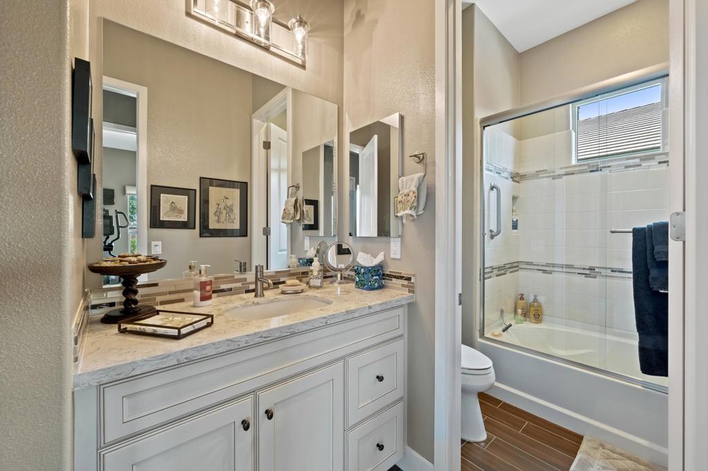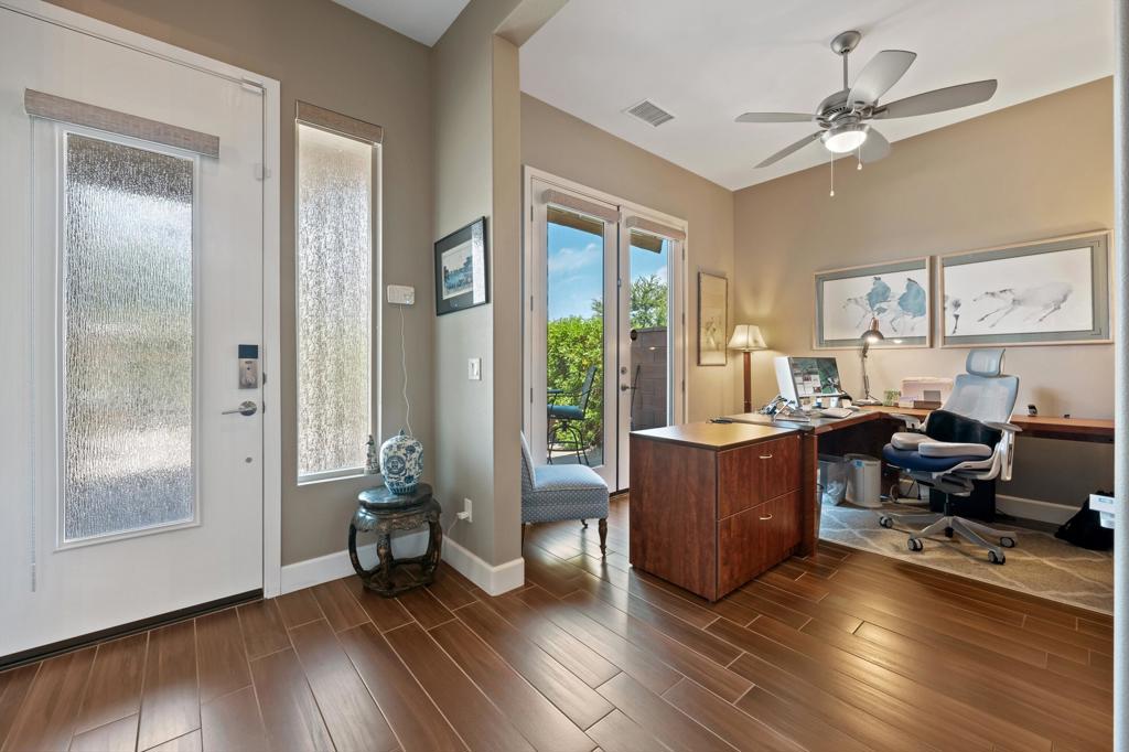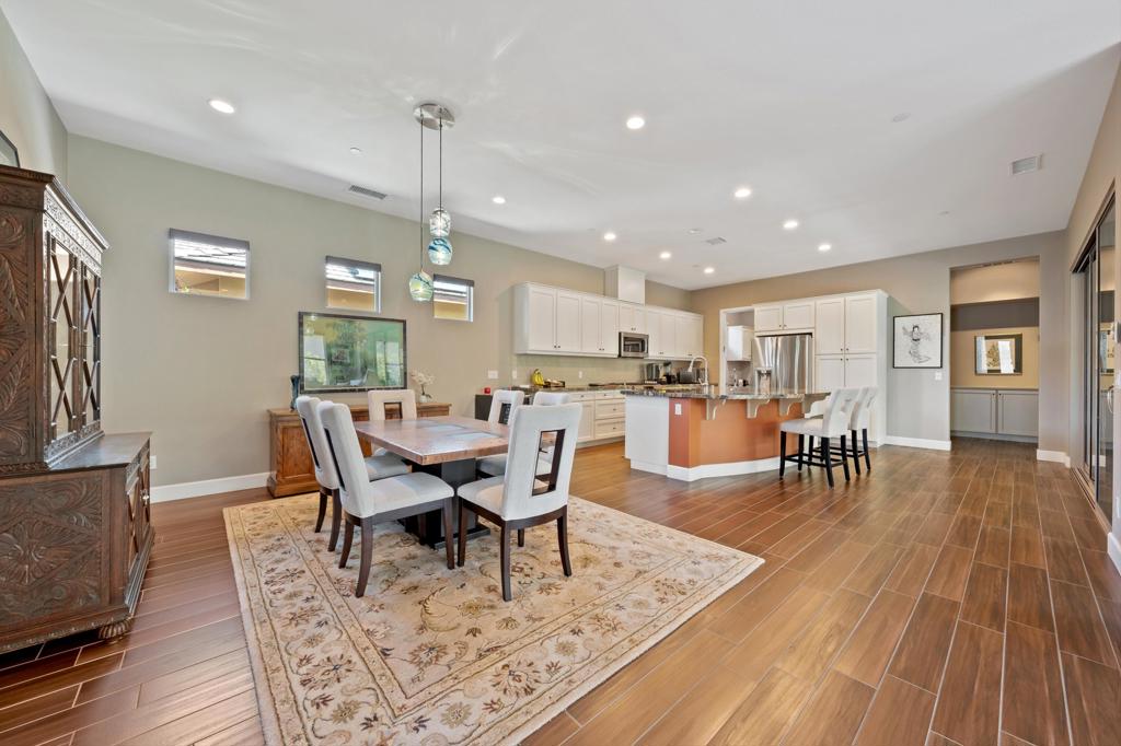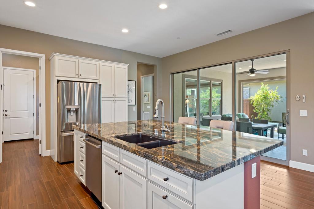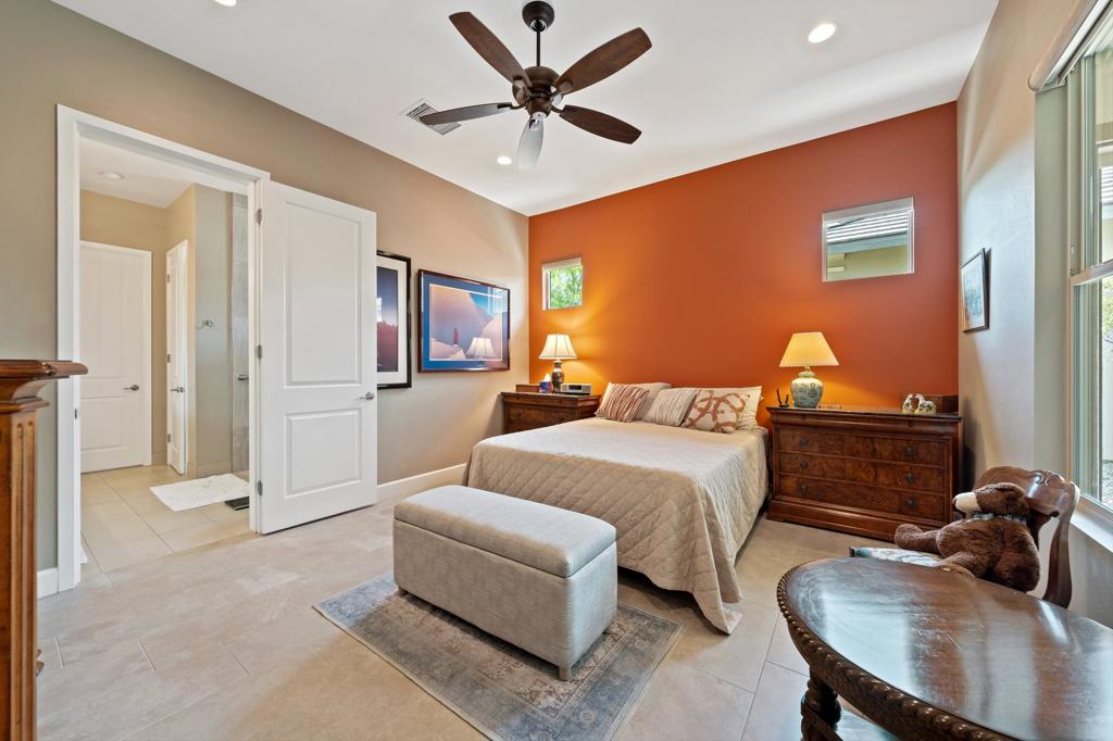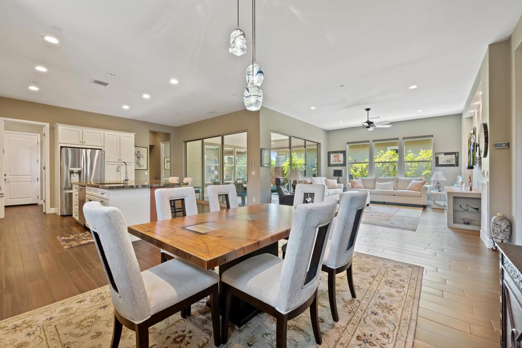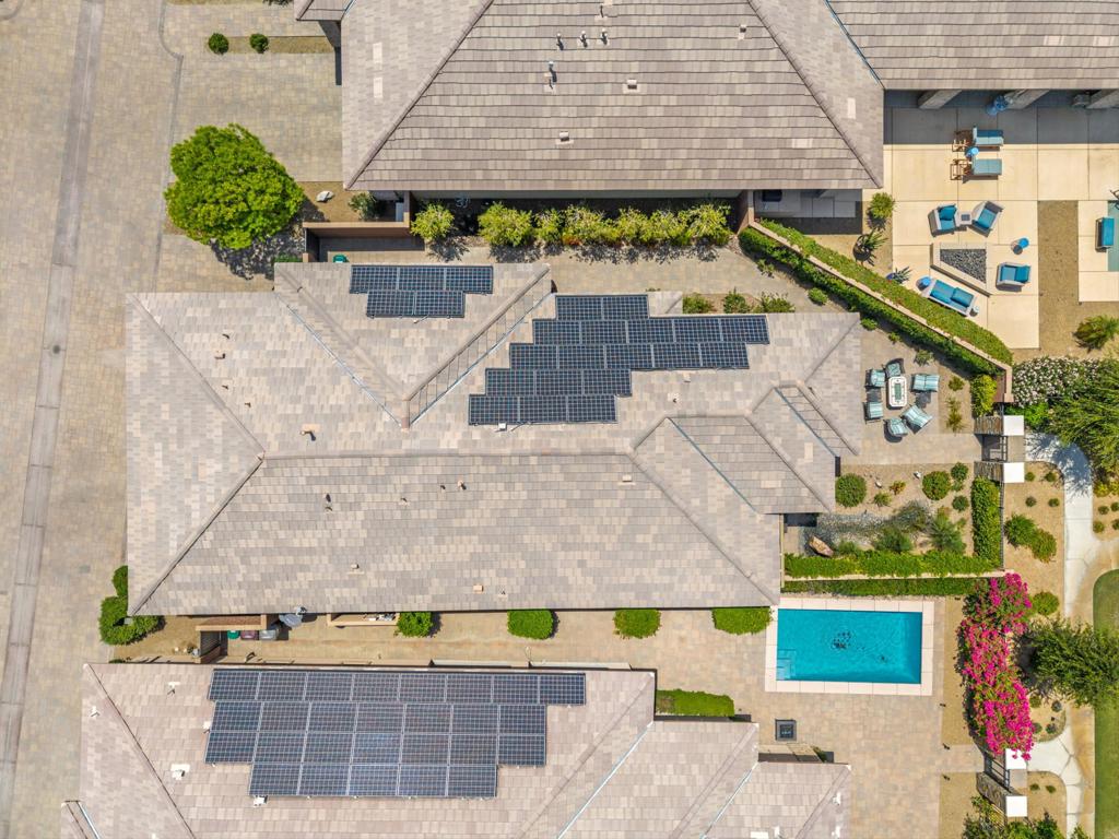 Welcome to resort-style living in the 'All Ages' section of the sought-after Trilogy at the Polo Club. This beautifully upgraded Solare floor plan offers 1,902 square feet of thoughtfully designed space, with soaring 10' ceilings and an open concept layout that blends comfort, elegance, and function.The heart of the home is the kitchen and great room, seamlessly connected and ideal for entertaining. Designer tile flooring flows throughout, complemented by dramatic granite slab countertops and a striking tiled fireplace wall. Two expansive rolling glass doors create a true indoor/outdoor living experience, opening to a spacious patio. The patio features a folding glass enclosure, adding up to 270 square feet of additional living space year-round.The smart space laundry room offers generous storage, natural light, and multiple workstations. The primary suite features a large walk-in shower and walk-in closet, while the den provides serene views of the patio and adjacent park. The upgraded garage includes built-in storage and A/C, perfect for year-round use.Outside, enjoy two distinct patio areas--one facing south and one west--each maximizing outdoor enjoyment and capturing the desert light. The front patio includes a tranquil water feature and opens to a lush, oversized park, offering privacy and peaceful views.The home also features SheaXero, a solar energy system designed to offset the homes annual electric costs for the next 10 years. A Polo Club Membership is available for transfer (buyer to pay $1,875 fee), granting access to a 25,000 sq ft clubhouse with a fitness center, pickleball, tennis, resort and lap pools, an indoor golf simulator, and more. Dine at June Hill's Table, the on-site restaurant with five-star cuisine and friendly ambiance. All of this, set against the backdrop of the stunning Santa Rosa Mountains.Experience the best of resort living in a home designed for both style and ease. Welcome home.