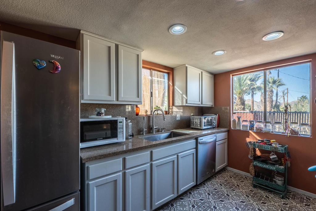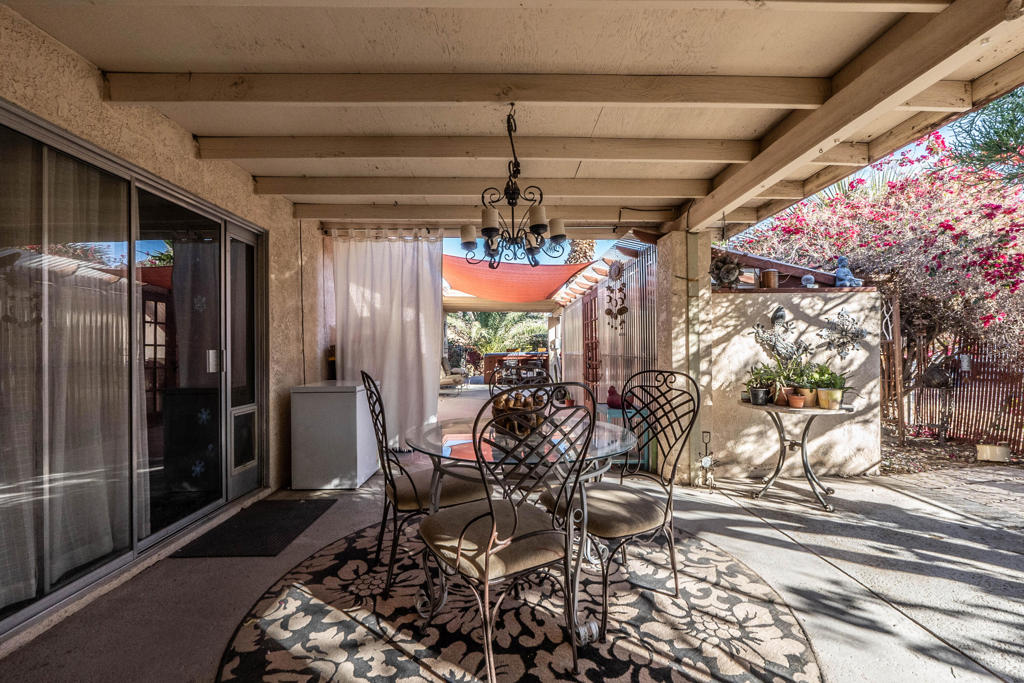 1.Located in South La Quinta, this charming property offers a cozy and inviting atmosphere with 2 bedrooms and 2 bathrooms across 1260 square feet of living space. The home sits on a total lot size of 4792 square feet, providing a comfortable and manageable outdoor area. Situated on a corner lot, the rare south-facing front yard offers stunning views of the Santa Rosa Mountains, making it the perfect spot to enjoy your morning coffee or bask in the beautiful California sunshine. The updated kitchen is a standout feature, boasting granite slab counters and opens to the great room. Situated near hiking and biking trails, outdoor enthusiasts will love the easy access to nature and recreational activities. Whether you're looking for a leisurely stroll or an exhilarating adventure, the options are endless. This home is the perfect retreat for those seeking a comfortable and low-maintenance lifestyle in a desirable location. Don't miss out on the opportunity to make this gem your own!