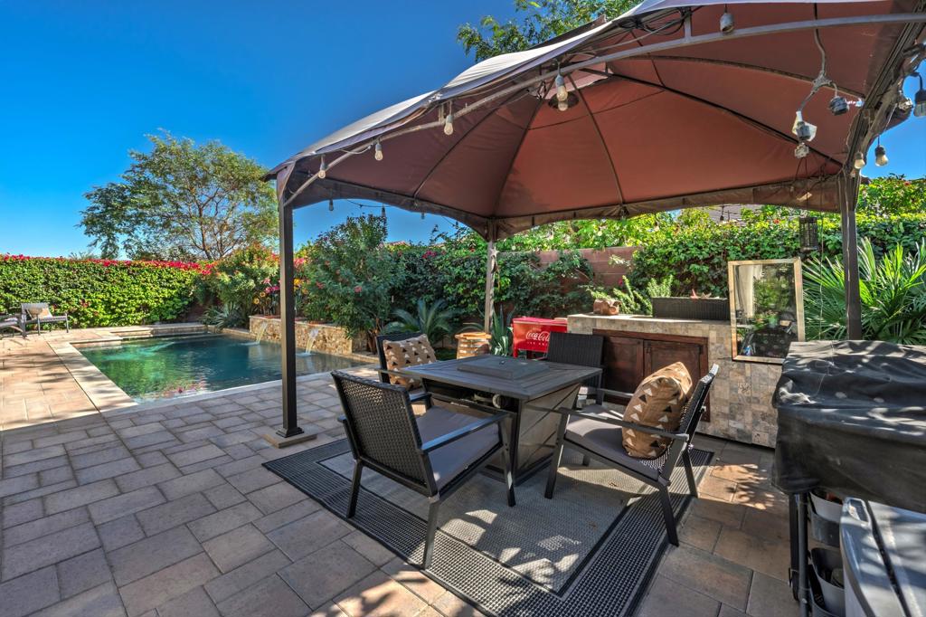 South Facing Pool Home | Celebrare Plan | Trilogy at The Polo Club | 3 Car Garage | Private Pool and Spa | Built 2018This highly upgraded pool residence with den in Trilogy at The Polo Club offers modern indoor outdoor living, a private pool and spa, and access to premier resort style amenities.The single story Celebrare plan offers approximately 2,451 square feet with two bedrooms, three baths, a dedicated den, and a rare three car garage. Built in 2018 and positioned on a 7,405 square foot lot, the home presents a thoughtfully designed open floorplan filled with natural light and seamless indoor outdoor flow.A private courtyard entry leads into expansive living spaces anchored by a great room with fireplace and dramatic 15 foot rolling glass door opening to the covered patio and resort style backyard. Wood tile flooring flows throughout the main living areas while plush carpeting enhances comfort in the bedrooms.The chef's kitchen features quartz countertops, stainless steel appliances, built in cooktop with vent hood, custom backsplash, and a generous island that connects effortlessly to the dining and living areas for entertaining.The primary suite serves as a private retreat with direct access to the backyard. The spa inspired bath includes a soaking tub, walk in shower, and dual vanities.Outdoor living shines in the south facing rear yard which captures all day sun and features a sparkling pool and spa with raised waterfall feature, lush landscaping for privacy, and an expansive covered patio designed for relaxed desert living.Additional highlights include a three car garage with EV charging station, premium upgrades throughout, and a prime location near the 25,000 square foot Polo Club clubhouse.Residents of Trilogy at The Polo Club enjoy access to resort pools, fitness center, tennis and pickleball courts, indoor golf simulator, and the acclaimed June Hill's Table restaurant. Transferable club membership available.This is a rare opportunity to enjoy private pool living within one of the Coachella Valley's most sought after resort communities.