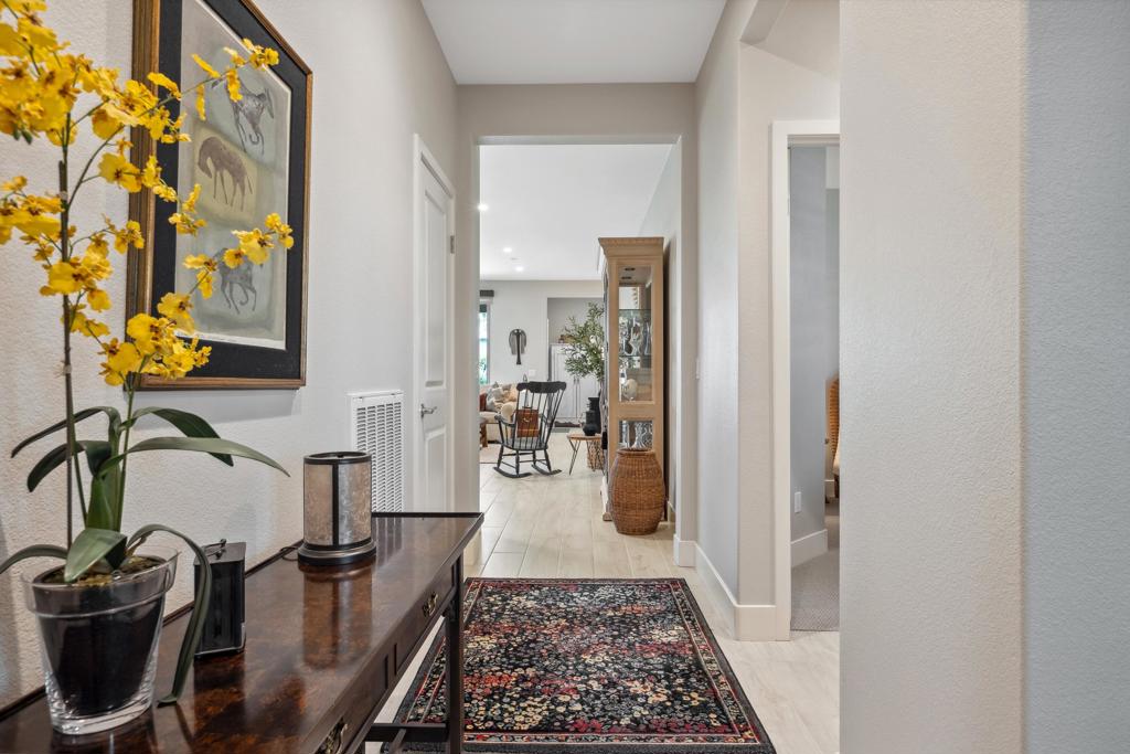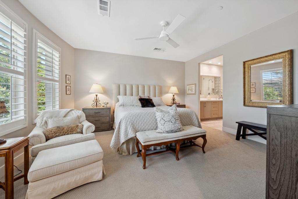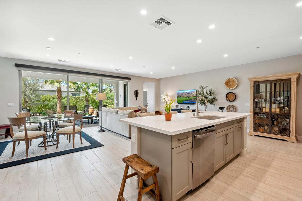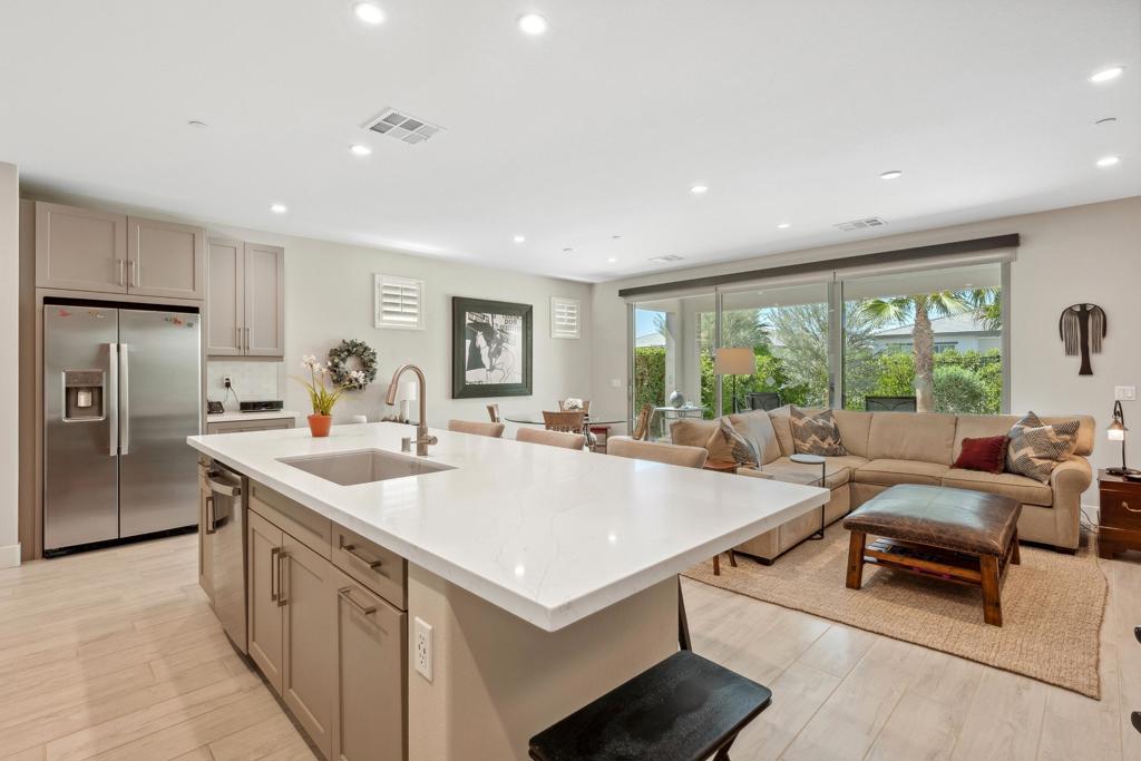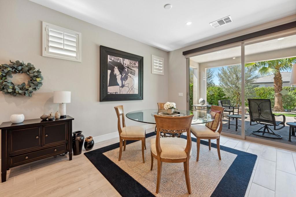 Welcome to an exquisite home in the sought-after Trilogy at the Polo Club, where resort-style living meets everyday elegance. This beautifully upgraded single-story residence offers 1,622 square feet of thoughtfully designed living space with two bedrooms, two bathrooms, and a versatile den--perfect for a home office, media room, or creative studio.Step inside to discover a bright and open floor plan, highlighted by 9' ceilings, stylish tile floors throughout the main living areas, and an impressive 15' rolling glass wall that seamlessly blends indoor and outdoor living. The gourmet kitchen is a showstopper, featuring upgraded cabinetry, stainless steel appliances, dramatic quartz countertops, and a spacious island--ideal for entertaining or casual dining.The primary suite is a tranquil retreat with dual vanities, a generous walk-in closet, and a custom designer shower that brings spa-like luxury home. A second bedroom and full bath provide comfort for guests or loved ones.Outside, a professionally landscaped, low-maintenance backyard offers a peaceful oasis framed by paver patios and walkways. Whether relaxing under the palm trees or enjoying your morning coffee, this private outdoor space invites serenity and connection with nature. A walking trail directly behind and beside the home enhances the sense of open space and privacy.Additional highlights include an air-conditioned garage for year-round comfort and a paver driveway for added curb appeal. An optional Polo Club Membership is available for transfer ($1,875 fee), granting access to a 25,000 sq ft clubhouse with a fitness center, resort and lap pools, tennis, pickleball, an indoor golf simulator, and the award-winning June Hill's Table restaurant.Set against the breathtaking Santa Rosa Mountains, this home is a rare opportunity to enjoy a refined, active lifestyle in one of the desert's most desirable communities.