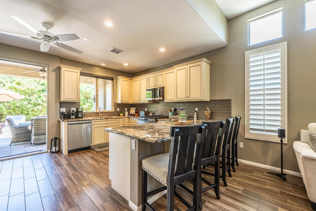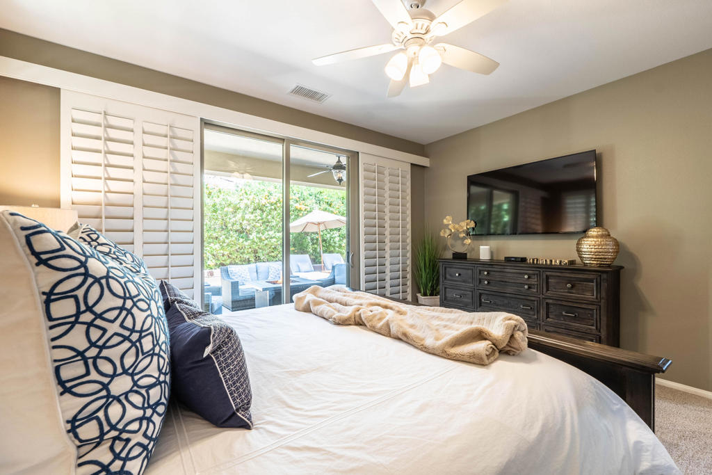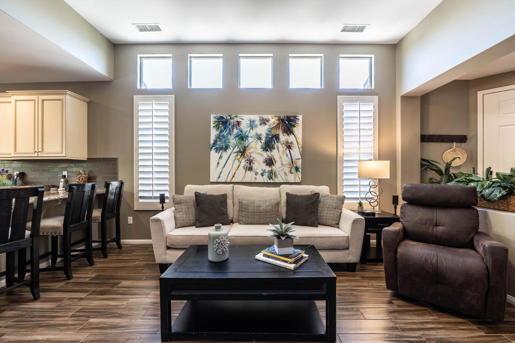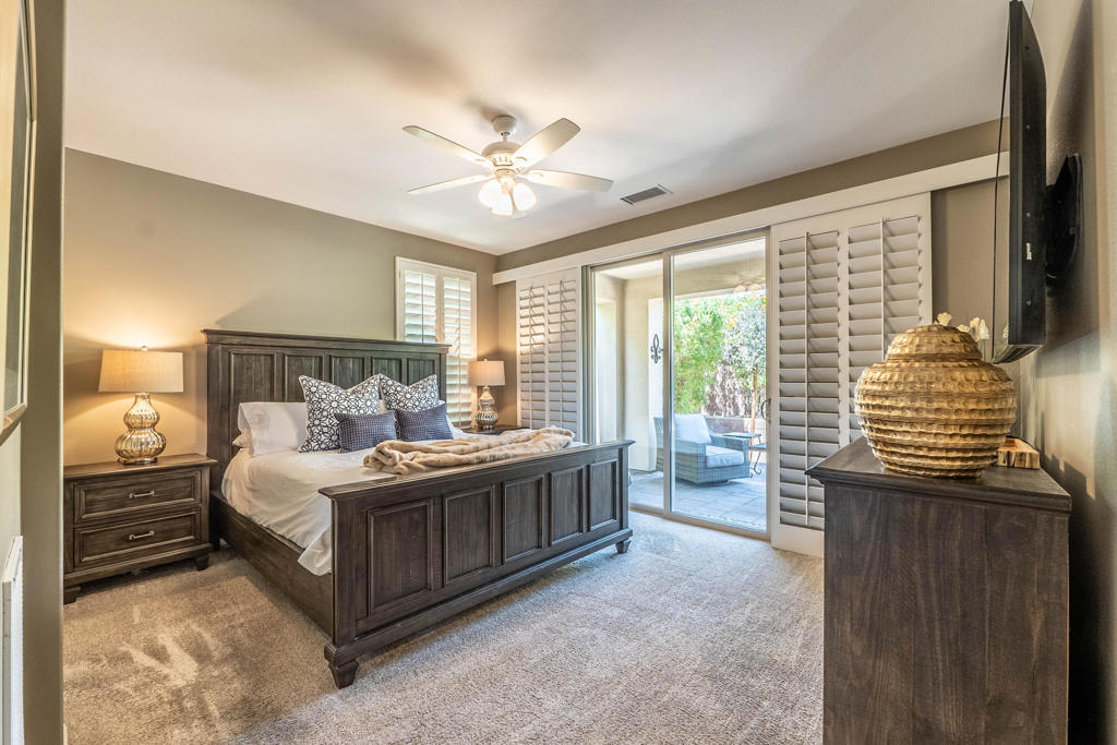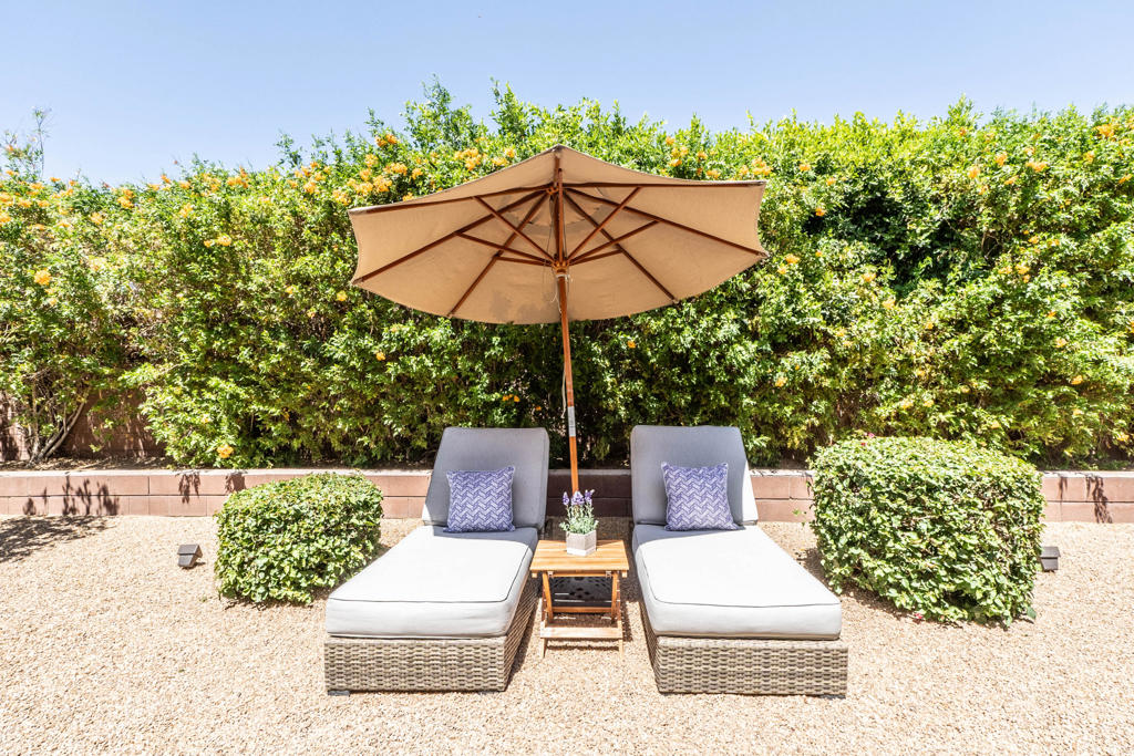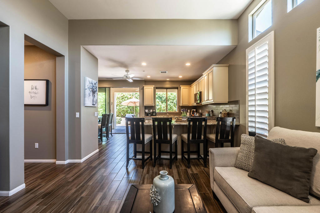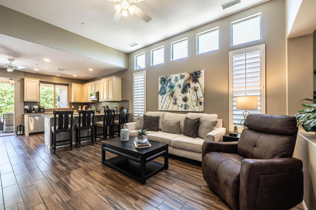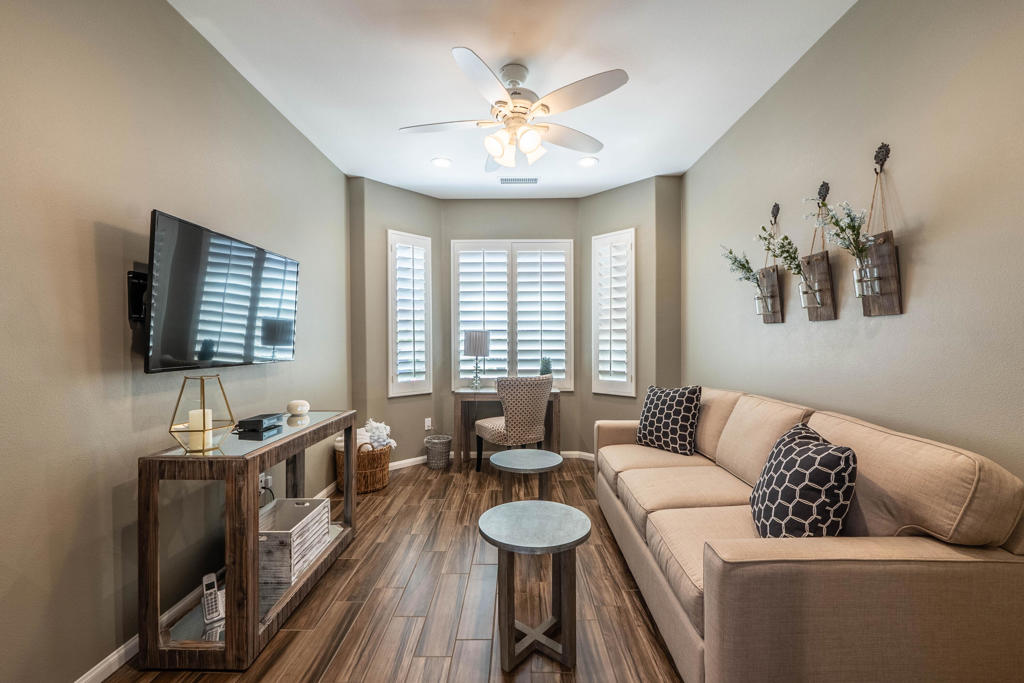 (Home Booked for 2026 Season ). Escape to Trilogy at the Polo Club, where modern design meets desert serenity. This stylish home offers 2 spacious bedrooms, 2 full bathrooms, and a cozy den with a sofa bed, perfect for accommodating up to 6 guests. Whether you're here for relaxation or adventure, this home is an ideal base for your desert getaway.With 1,386 square feet of open concept living space, this home features beautiful tile wood floors throughout the common areas and large windows that invite natural light in, creating an airy and warm atmosphere. The contemporary design provides a fresh and inviting space that feels like home.The kitchen is fully equipped with all-new appliances, including a gas cook-top with a griddle and a convection/air fryer oven along with elegant granite countertops. Whether you're preparing a simple meal or entertaining, this kitchen has everything you need to make cooking and dining a breeze.The master suite is a true retreat, offering a peaceful atmosphere with dual vanities and a walk-in shower. After a day of exploring, this space provides the perfect setting for relaxation and comfort.Step outside to your own private backyard, where you can unwind in peace. The covered patio features a BBQ and outdoor dining area, ideal for enjoying meals al fresco. Lounge in comfort with cozy outdoor chairs, enjoy a TV for watching the latest games or your favorite shows. The fire pit adds a cozy touch for evening gatherings under the stars and indulge in s'mores by the fire. The beautifully maintained desert landscape creates a calm, natural setting to relax in.With all the comforts of home and the beauty of the desert landscape, Trilogy at the Polo Club is the perfect getaway destination.